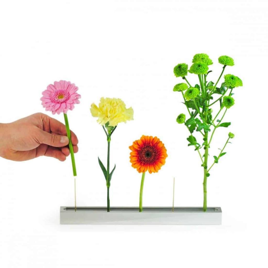 Gli amanti dei fiori non rimarranno indifferenti di fronte a Florinda, il portafiori futuristico che consente di disporre i fiori in piedi, grazie a un supporto con filo metallico, che va infilato direttamente nel gambo e fissato sul vassoio. Quest’ultimo va riempito con dell’acqua per mantenere i vostri fiori freschi come appena colti. Acquistabili qui