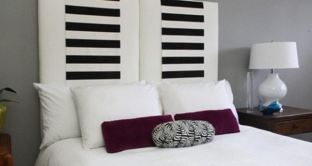 Una testata di design realizzata con pannello di legno, imbottitura sintetica e stoffa. Tutto sta nello scegliere il tessuto più adatto alla stanza!