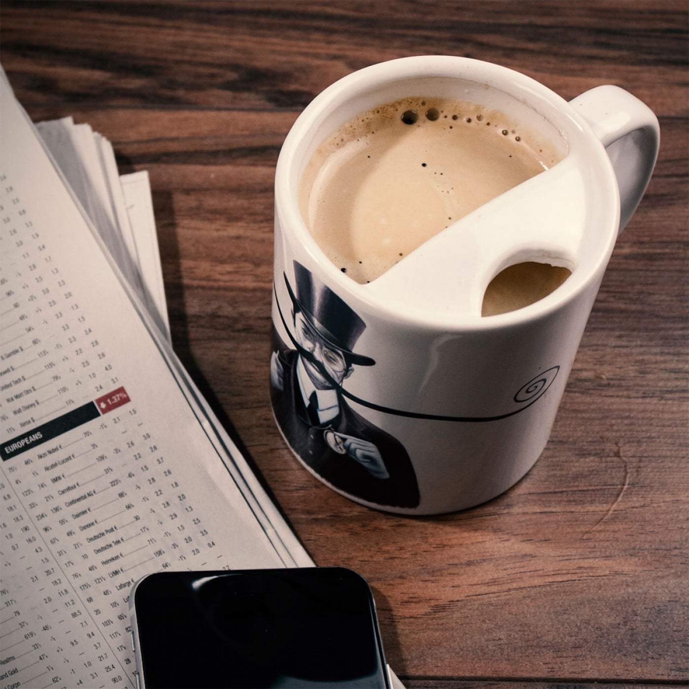 Tazza per baffi per preservare baffi dalla schiuma di cappuccino e di caffè.