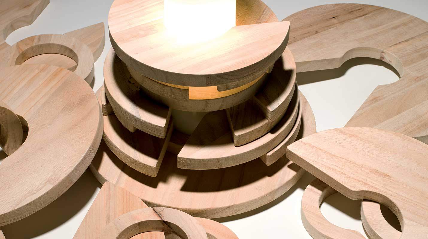 L’abat-jour in legno consente di mantenere la sagoma classica o rompere drasticamente con la tradizione, sperimentando prospettive nuove.