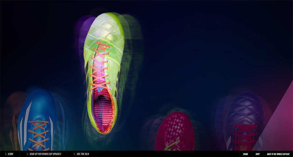 Per i mondiali di calcio Fifa World Cup 2014 in Brasile, Adidas ha rilasciato quattro nuovi modelli di scarpe da calcio con caratteristiche uniche per i diversi stili di gioco.