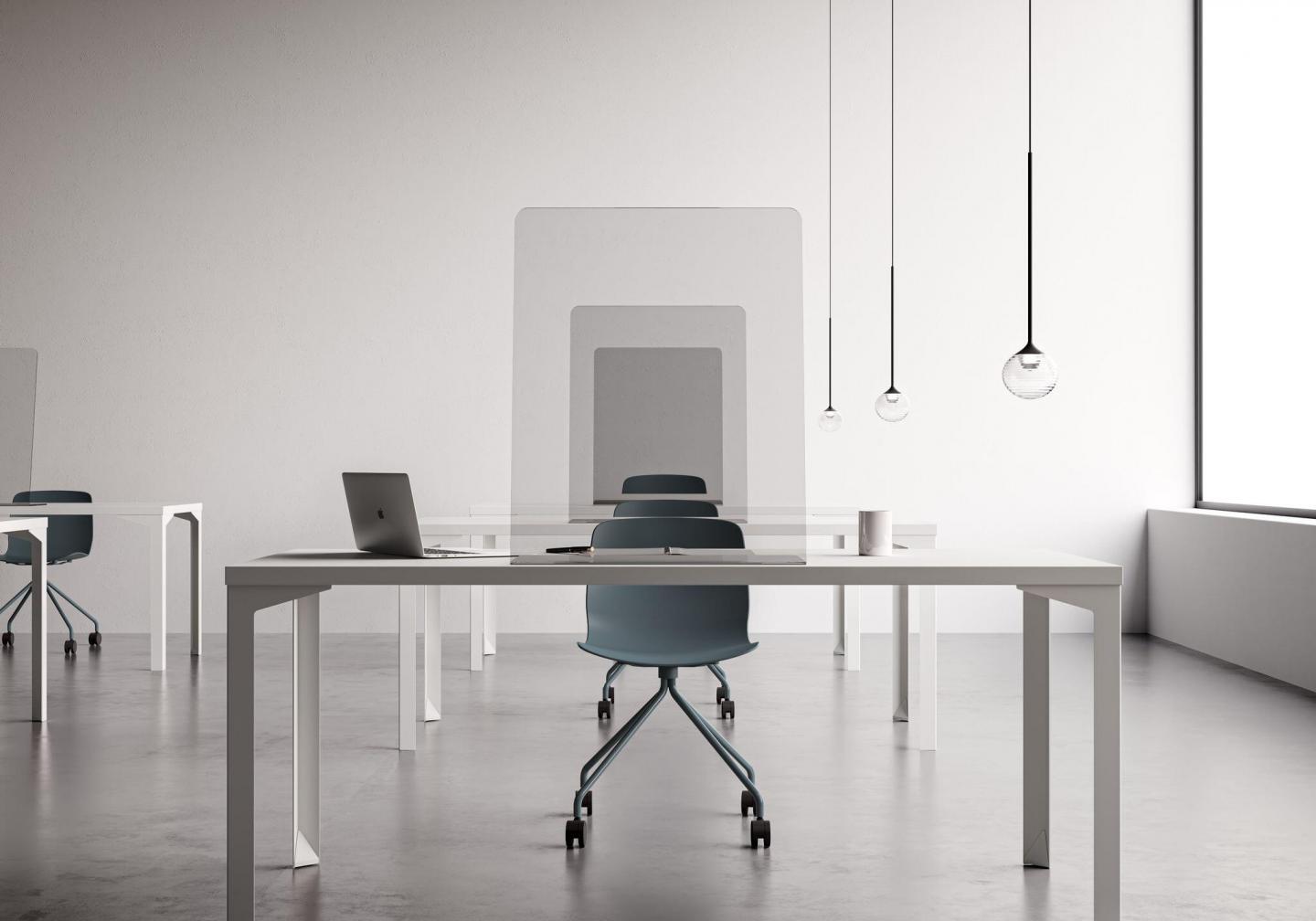 Si tratta di schermi in plexiglass trasparenti e adattabili alla maggior parte delle superfici, quindi facilmente integrabili ad una postazione già esistente. Sono dotati anche di un sistema autoportante che consente di collocarli su reception, scrivanie, desk e altre postazioni. Facili da pulire con qualsiasi detergente e riciclabili al 100%, i pannelli della serie DV300-Screen sono una presenza quasi impercettibile nello spazio e si inseriscono perfettamente in qualsiasi contesto.