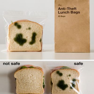 I #designer Sherwood Forlee e Mihoko Ouchi di the. hanno realizzato ANTI-THEFT LUNCH BAGS, delle bustine trasparenti che fanno sembrare il panino all’interno decisamente avariato. Ideale per non farselo rubare dai colleghi o dai bulli di scuola. Acquistabile qui.