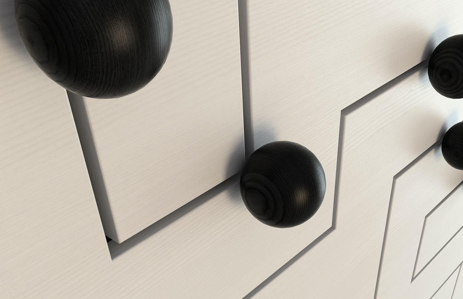 L’Appendiabiti a parete Compl8 è un progetto realizzato da REdesign per RadicediK, costituito da un pannello di legno quadrato caratterizzato da un disegno di un labirinto, ricavato a intaglio nel pannello. Nel solco del tracciato sono alloggiati 8 pomelli rotondi che sono liberi di essere spostati lungo l’intero percorso e possono assumere continuamente posizioni diverse, consentendo di configurare l’oggetto in maniera giocosa e personale.