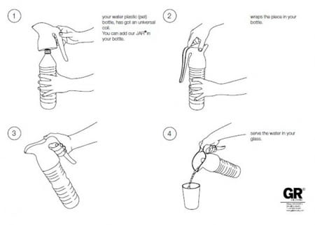 GrLab di Barcellona ha realizzato Aqua Jar, un utile plug in da aggiungere alle classiche bottiglie di plastica per utilizzarle come caraffa. Aqua Jar è realizzato in plastica biodegradabile e riciclabile, è disponibile in color grafite, arancio e gelo.