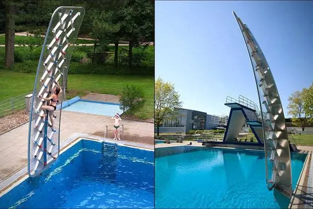 AQUACLIMB CLIMBING WALL è la parete d’arrampicata da installare a bordo piscina.