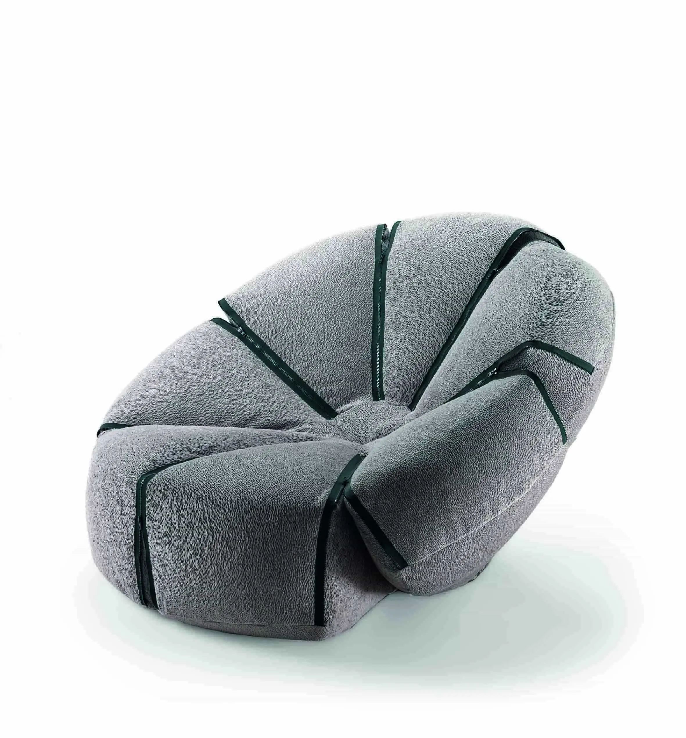 La poltrona LOL disegnata da Giuseppe Viganò ricorda un fiore semichiuso i cui petali comodi e super avvolgenti sono uniti tra di loro da grandi cerniere che diventano un dettaglio caratterizzante e distintivo.