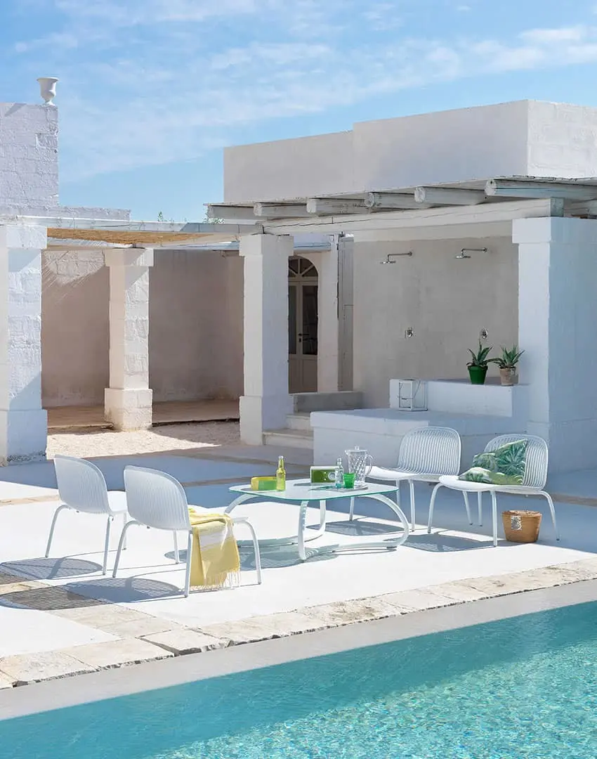 L’arredo del bordo piscina diventa così funzionale a creare uno stile che, coerente con le scelte generali della casa, genera un continuum estetico e funzionale. Ecco alcune proposte di arredo bordo piscina di Nardi. Prodotti realizzati completamente in Italia, facili da pulire, stoccare e che non richiedono particolare manutenzione a fine stagione.