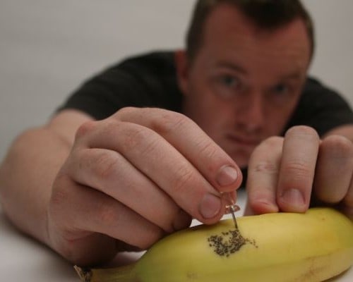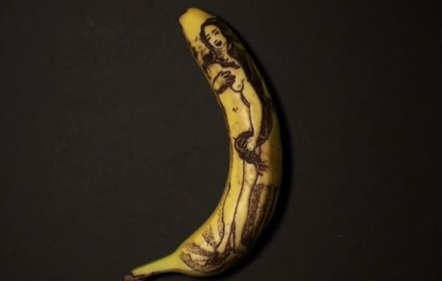 Banana art di Phil Hansen 30 Set 2012 Antonio Italia Total0Con un punteruolo il pittore americano Phil Hansen disegna opere di Michelangelo e altri artisti sulla buccia di una banana. Via ladyblitz.it