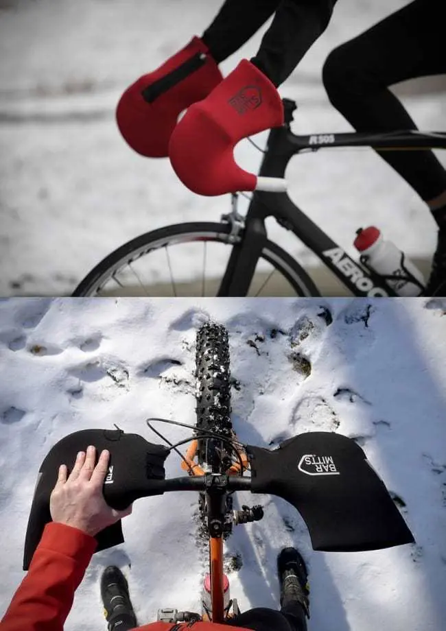 Bar Mitts sono i guanti integrati con la bici, ideali per pedalare durante l’inverno e per ripararsi dal freddo e dal vento. Acquistabile qui.