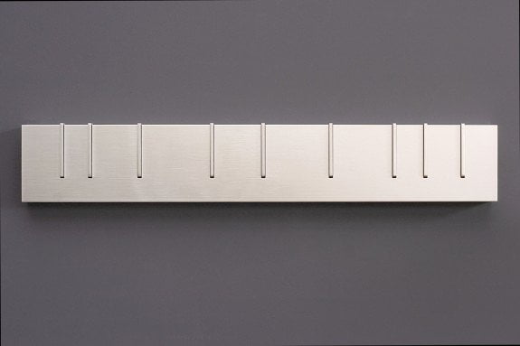 Disegnata da David E. Scott per il brand Desu Design, Symbol Coat Rack è una barra appendiabiti che rappresenta un perfetto compromesso tra estetica e funzionalità. Fissato allo parete, l’oggetto mostra il suo volto puramente ornamentale, mentre svela la sua vera natura solo al momento dell’utilizzo.