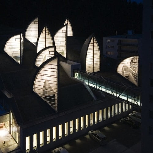 Tschuggen Grand Hotel 7 Dic 2012 Antonio Italia Total0Nel 2006 a Arosa, in Svizzera,l’architetto Mario Botta ha realizzato Tschuggen Grand Hotel e Centro Benessere (o Berg Oase), una struttura ben integrata nel paesaggio circostante. Di notte il Berg Oase illuminato è davvero suggestivo.Via creativeroom.tumblr.com