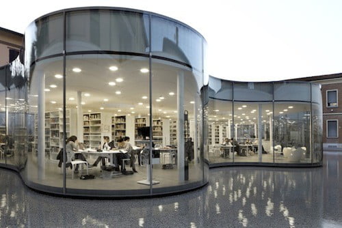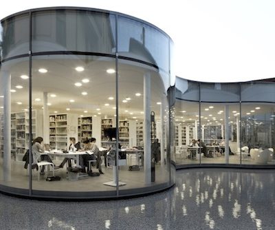Lo studio di architettura Andrea Maffei Architects, in collaborazione con quello giapponese Arata Isozaki, ha realizzato la nuova biblioteca di Maranello. Gli interni bianchi, le pareti ondulate in vetro, il verde esterno e l’acqua intorno rendono la biblioteca un luogo ideale per immergersi completamente nella lettura.