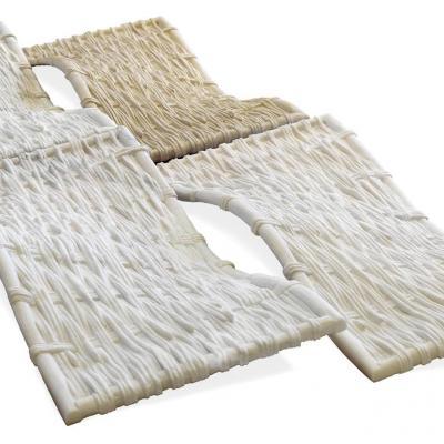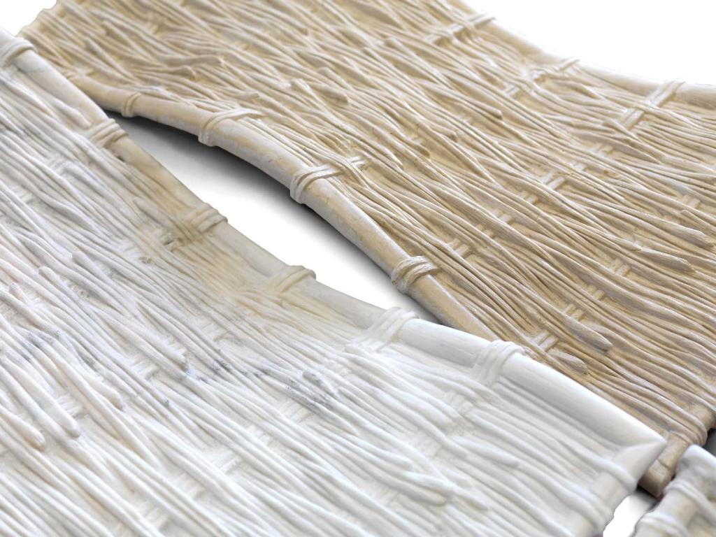 Dall’incontro fra il carisma e l’estro progettuale dell’architetto italiano Benedetta Tagliabue e la sensibilità artistico-interpretativa di Decormarmi scaturisce un’installazione all’avanguardia, in cui la pietra è lavorata come fosse una fibra, tanto da evocare le delicate forme e la leggera flessibilità del vimini.