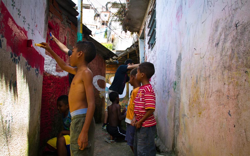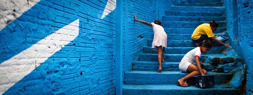 Mistura Boa, il collettivo di artisti urbani di Madrid ha realizzato il progetto Luz nas Vielas, nella favela Vila Brasilândia, alla periferia di San Paolo, in Brasile. Coinvolgendo i bambini hanno trasformato le strade della loro vita quotidiana. Qui tutte le foto.
