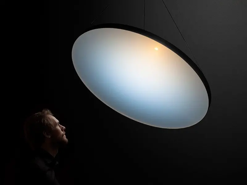 Particelle speciali in resina diffondono la luce fredda del power led e disperdono le onde luminose blu, riproducendo lo stesso effetto fisico che si verifica quando la luce solare si propaga nell’atmosfera terrestre.