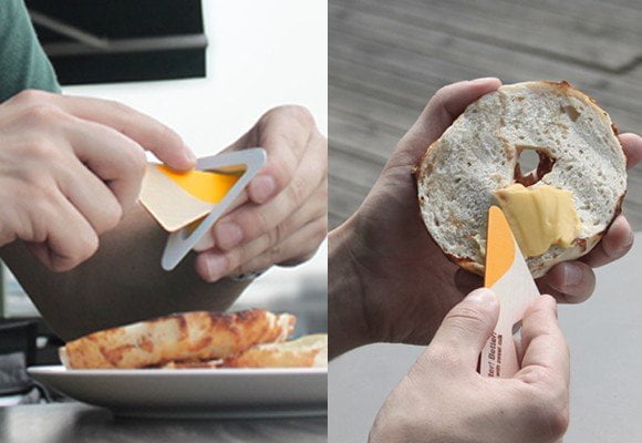Il coltello riveste una duplice funzione: serve per spalmare il burro, ma, prima ancora, funge da tappo di chiusura della confezione!