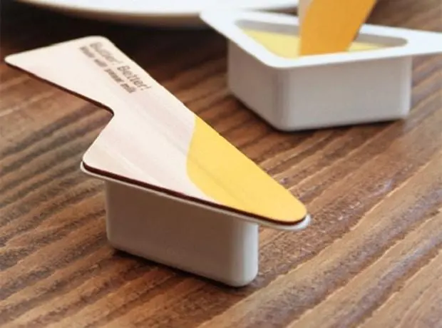 Il coltello riveste una duplice funzione: serve per spalmare il burro, ma, prima ancora, funge da tappo di chiusura della confezione!