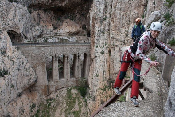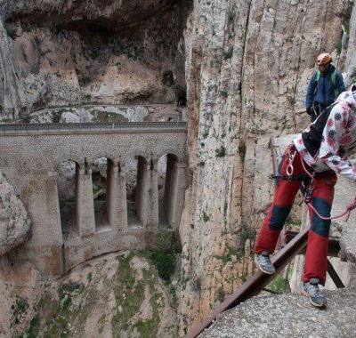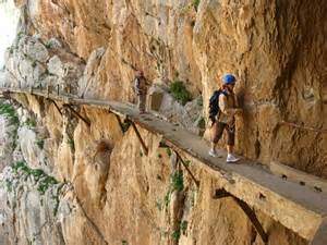 Il Caminito del Rey è un sentiero di circa 3 Km costruito lungo le pareti verticali del Desfiladero de los Gaitanes a El Chorro, vicino a Álora (Malaga – Spain). Il percorso inizia con i binari del treno della Renfe, la società ferroviaria spagnola, e prosegue su una pericolosissima passerella molto frequentata da abili scalatori. Per maggiori informazioni klettern-in-spanien.de