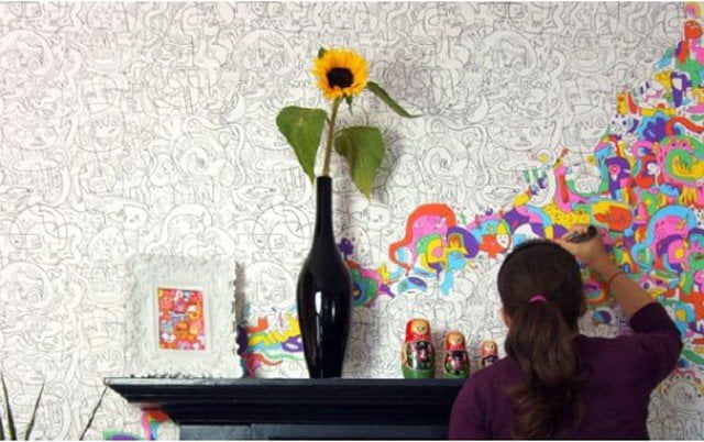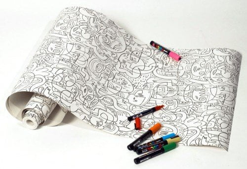 Concepita come un libro da colorare, la carta è perfetta per arredare la camera dei bambini.