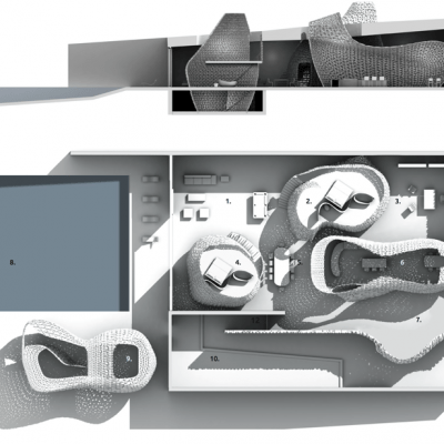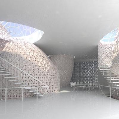 Il design dell’edificio ha una linea sinuosa e moderna. Le ripartizioni degli ambienti interni sono uniche, contraddistinte da disegni geometrici e superfici traslucide, capaci di catturare la luce e lasciarla trapelare dai molteplici lucernari.