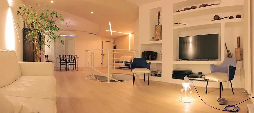 Diverse ambientazioni concorrono a completare il progetto illuminotecnico, con luci d’atmosfera ed elementi d’accento: tagli come terre spaccate dal sole, da cui fuoriesce una calda luce d’ambiente; contemporanei elementi lineari che lavorano sulla riflessione delle superfici; spot diretti e mirati con precisione solamente dove occorre.