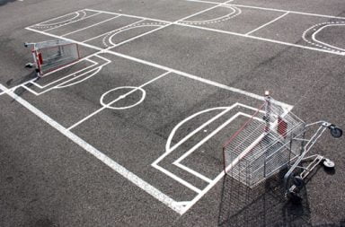 Florian Rivière si diverte a creare arte urbana con semplici materiali, come ad esempio il progetto "don’t pay, play": con dei carrelli della spesa si …