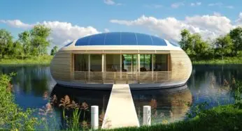 Una #casaecologica galleggiante interamente realizzata in legno lamellare ed alluminio riciclati.