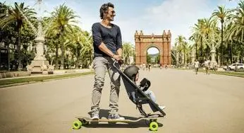 Un #passeggino con skateboard integrato per girare la città in lungo e in largo!