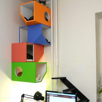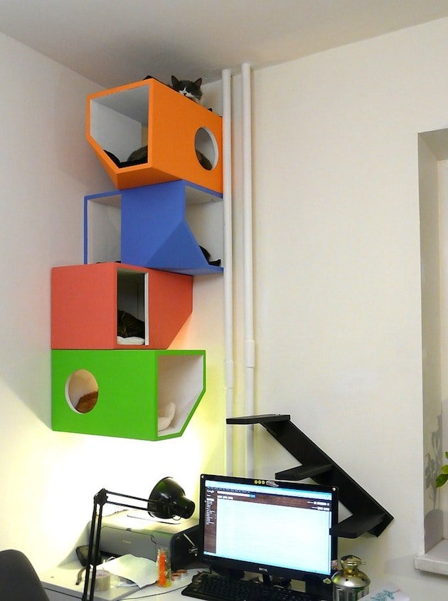 Catissa: modern wall mounted cat tree 29 Mar 2013 Antonio Italia Total0Mojorno ha realizzato Catissa, una divertente lettiera per gatti modulare a forma di cubi da appendere sulla parete, a mo’ di scala. Disponibile in diversi colori.Via inthralld.com