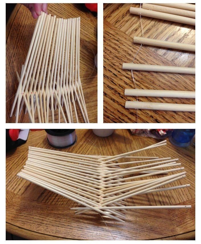 Un progetto dallo stile orientale per realizzare un originale cesto portafrutta. Utilizzando esclusivamente bacchette cinesi e filo di nylon, potrete creare un accessorio per la cucina moderno e pratico da utilizzare! Per aprire il contenitore, basta ruotare le bacchette, in modo alternato, in direzioni opposte. Per chiuderlo è sufficiente spostare gli elementi verso il centro.