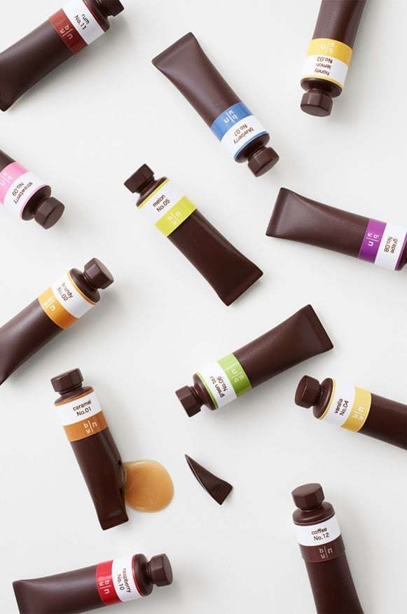Lo studio Nendo di Oki Sato infatti, ha reinventato la classica scatola di cioccolatini in maniera inusuale, ovvero come un set di tempere a olio molto realistico, costituito da ben 12 tubetti in cioccolato, ognuno con un sapore diverso (rhum, caffè, brandy, lampone, tè verde…) pronti per essere gustati.