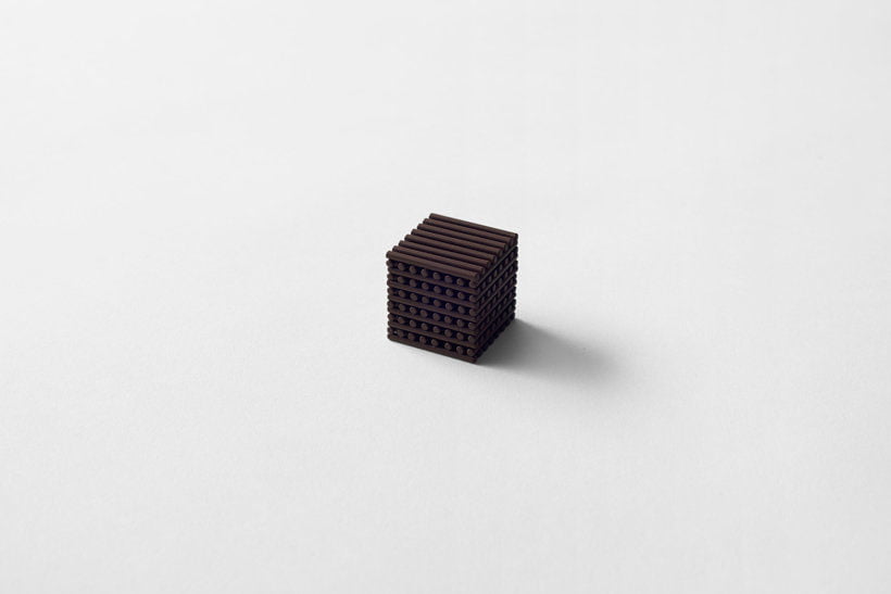 9. “zaku-zaku” Alternately placed thin chocolate rods forming a cube.