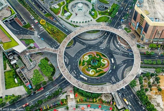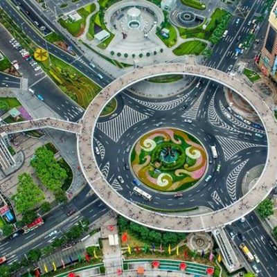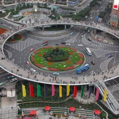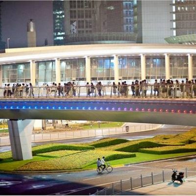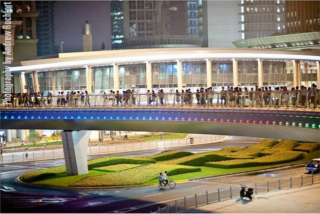 A Lujiazui, nel distretto Pudong di Shanghai, è stato costruito un grande ponte circolare, alto circa 20 metri, sul quale i pedoni accedono attraverso scale mobili per raggiungere l’Oriental Pearl Tower. Il ponte, grazie anche alla suggestiva illuminazione notturna, è diventato anche una frequentata attrazione turistica.