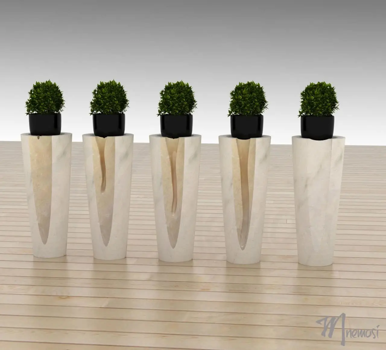 Il sottovaso Clessidra conquista con il suo design materico, valorizzato dalla pietra naturale, che arreda l’ambiente con superba eleganza.