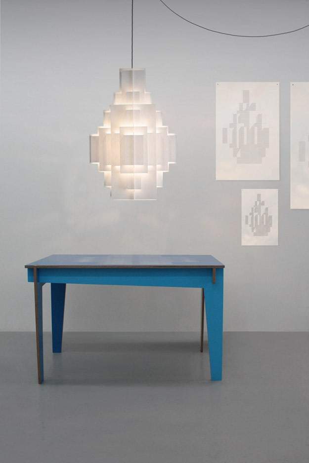 La luce, propagata dal centro, trapela attraverso i volumi creando diversi gradi di trasparenza.