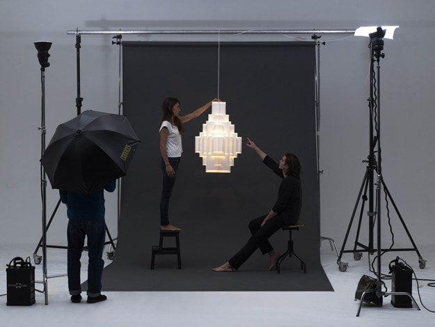 L’effetto visivo è sorprendente: sorretta da un filo trasparente, la lampada sembra levitare, sotto la spinta di chissà quale forza misteriosa.