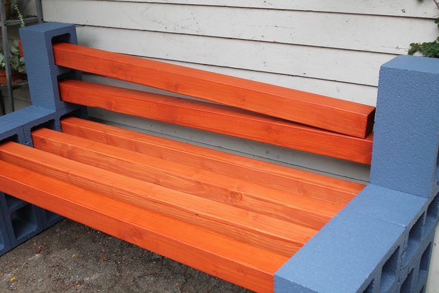 Panchine da giardino per vivere comodamente lo spazio esterno. La soluzione è facile da realizzare ed economica. La struttura si compone di travi di legno con sezione quadrata e blocchi di cemento forati, che si possono riciclare da precedenti lavori.