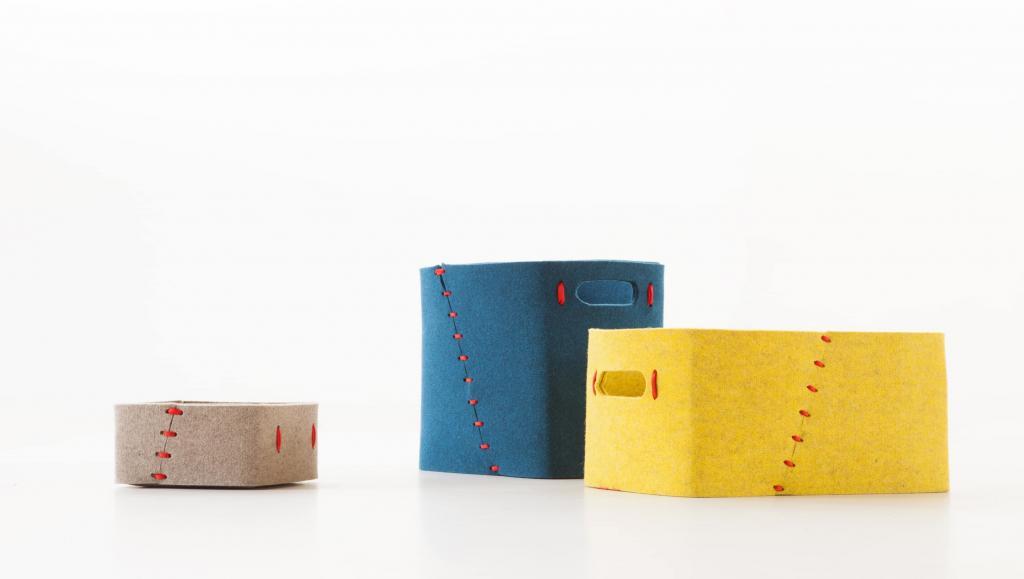 Imperativo è realizzato in feltro naturale 90% lana, 100% Italiano. Cordone in cotone riciclato con capocorda in metallo. Il complemento d’arredo è disponibile in tre varianti colori: beige scuro, giallo zinco e blu oceano; e nelle dimensioni Small 22×22, h 10 cm; medium 42×25, h21 cm; 25×33, h 30 cm.