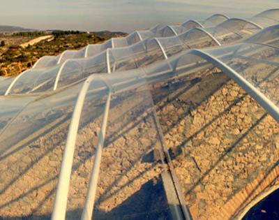 L’architetto spagnolo Ferran Vizoso ha ristrutturato la chiesa di Corbera d’Ebre, un paese vicino a Tarragona, in Spagna, distrutta durante la guerra civile spagnola. L’intento di Vizoso di utilizzare nuove tecnologie e materiali senza sostituire l’architettura esistente, ad esempio, si è concretizzato con l’uso di pannelli ETFE per il tetto.