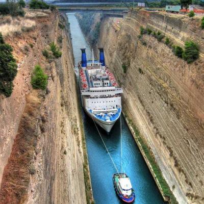 Il Canale di Corinto, in Grecia, è stato costruito 120 anni fa per collegare il Golfo di Corinto al Mar Egeo: è lungo più di 6 Km, largo 25 metri e profondo 8 metri. Il canale permette di risparmiare 200 Km di navigazione per il periplo del Peloponnesso.