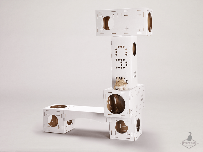 Blocchi comunicanti, tunnel, scivoli… Questa è molto più di una cuccia per gatti, è un vero parco giochi! Il design articolato è studiato per stimolare in modo naturale l’esercizio fisico e mentale di gatti di ogni età e temperamento.