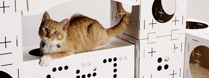 Una cuccia per gatti componibile, per regalare al vostro animale domestico momenti unici di gioco e di relax! Interamente realizzata in cartone, la cuccia si compone in pochi secondi e si adatta ad ogni ambiente.