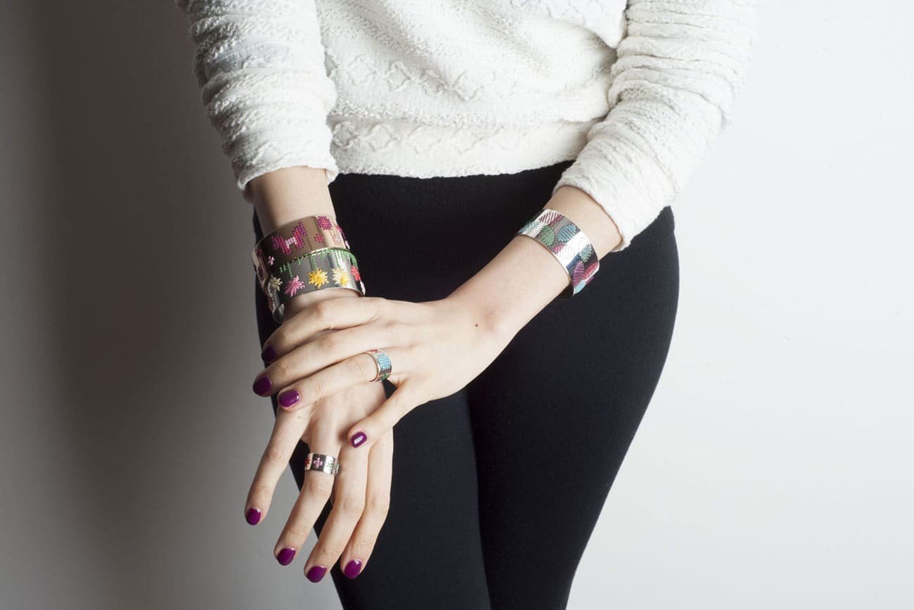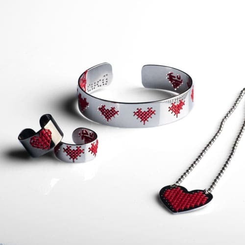 Una linea di gioielli semplice e pulita, il cui nome richiama lo stupore davanti al coinvolgente accostamento del metallo con il ricamo a punto croce.