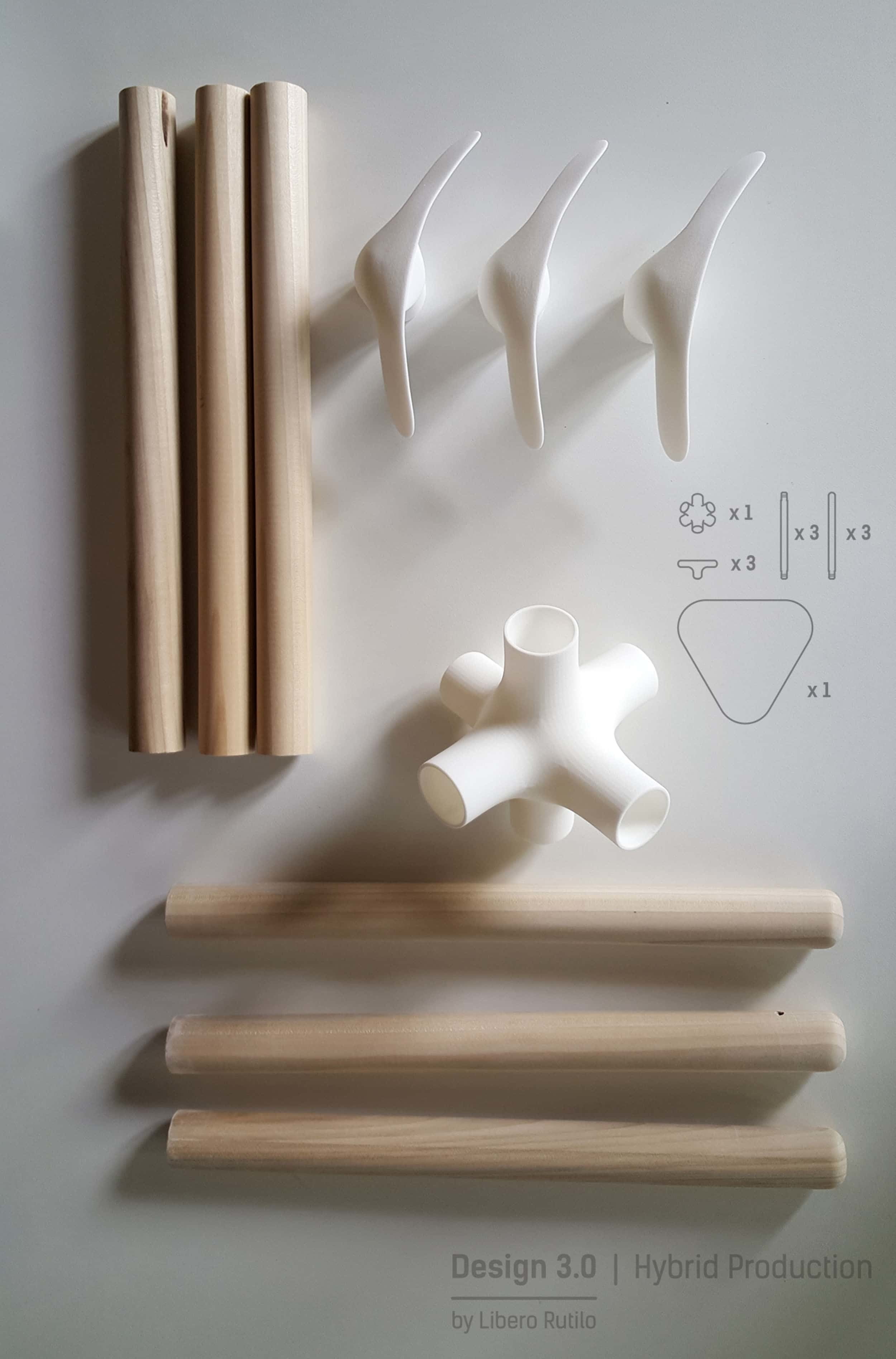 La XXI Triennale Internazionale di Milano affronta, tra i vari temi, anche i rapporti tra design e accessibilità delle nuove tecnologie dell’informazione e i rapporti tra design e artigianato. Selezionato tra i progetti over 35, Design 3.0 propone una nuova dimensione tra artigianato e produzione industriale più attuale e più coerente con il periodo economico contemporaneo. Un’idea di produzione basata anche sul facile montaggio/smontaggio sia per le spedizioni sia per riciclarne le componenti.