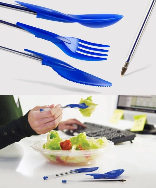 Din Ink Pen Utensile è un set di tappi per le famose penne biro a forma di posate. Applicateli alle penne e siete pronti per pranzare in ufficio o a scuola. In vendita qui.