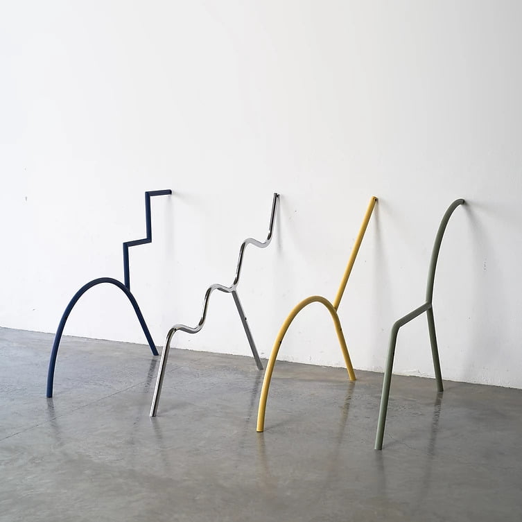La particolarità che caratterizza queste sedie modulari risiede nella stravaganza dei braccioli, ognuno dei quali ha un nome tipicamente danese: Han, Somma, Franz e Mujoel ricordano in maniera chiara degli scarabocchi, come quelli che amano disegnare i bambini quando hanno un pennarello nelle mani, con forme desuete, a zigzag e linee arcuate.