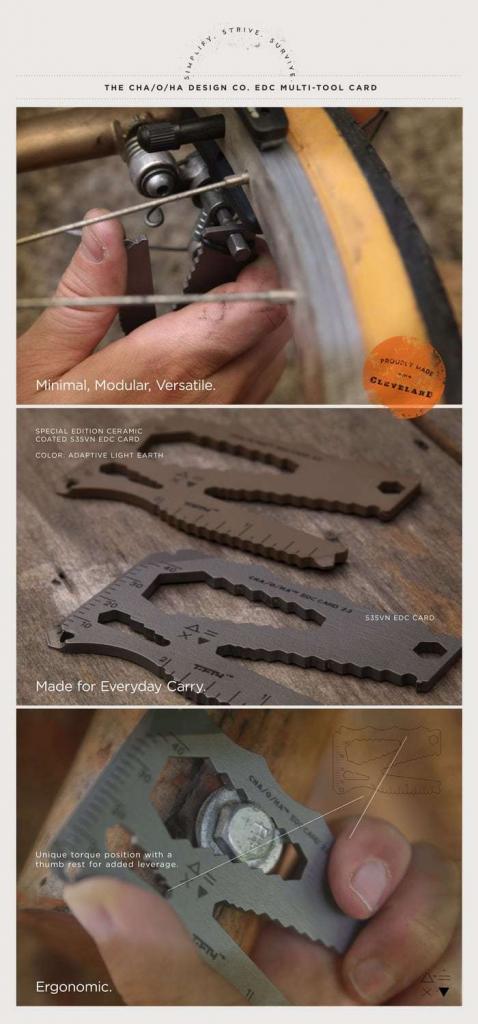 EDC Card è la carta multifunzione, uno strumento su cui puoi sempre contare. Dalle dimensioni ridotte di una carta di credito il gadget offre più di 30 funzioni. Qualità, versatilità e minimalismo il tutto in uno strumento portatile che occupa poco spazio, realizzato in acciaio inox, EDC Card diventa il nostro miglior amico. Realizzato da CHA / O / HA Design Co. a Cleveland il progetto è in fase di startup e può essere supportato su kickstarter, nato dallo sforzo di progettare qualcosa che sia unico, minimalista ma di elevata qualità.