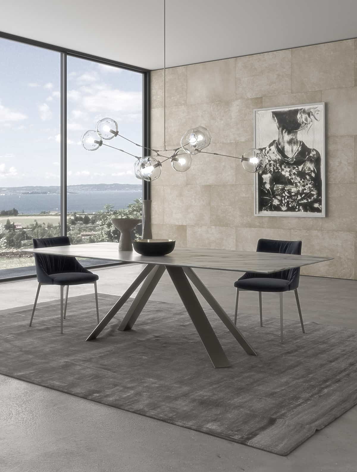 Ki è un tavolo il cui concept è ispirato alla leggerezza e all’essenzialità. Un giusto equilibrio tra forma e funzione caratterizzato da poche ma decise linee che trasmettono solidità e rigore e dalla base a raggiera in metallo verniciato. KI (= giapponese: energie vitali dell’universo) evidenzia una elaborata e raffinata semplicità particolarmente adatta ad arredare con gusto contemporaneo e atmosfere confidenziali le stanze del living.