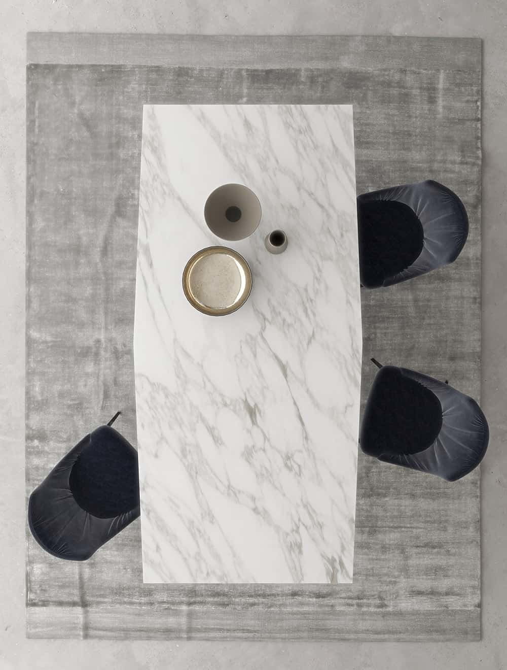 La vasta proposta di piani in diversi materiali e forme garantisce la possibilità di una forte personalizzazione rispetto a preferenze ed esigenze. Presentato con differenti piani in marmo, ceramica, vetro colorato e legno. Si può scegliere, inoltre, fra piani dalla forma rotonda, leggermente esagonale o rettangolare, quest’ultimo, declinato con piano in legno, è previsto anche nella versione XXL (lunghezza cm340 per cm120) con doppia base in metallo verniciato per soddisfare ogni esigenza di spazio.